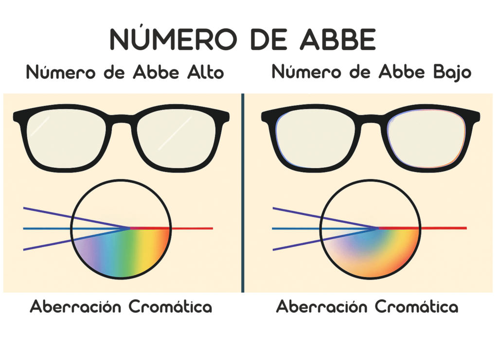 - En el diseño de lentes oftálmicas, se prefieren vidrios con alto número de Abbe para reducir la aberración cromática, especialmente en los bordes.