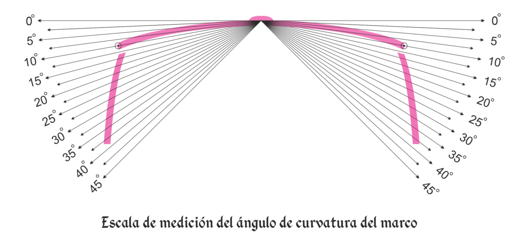- El ángulo de curvatura del marco se considera especialmente en diseños que rodean los ojos, como los marcos deportivos.